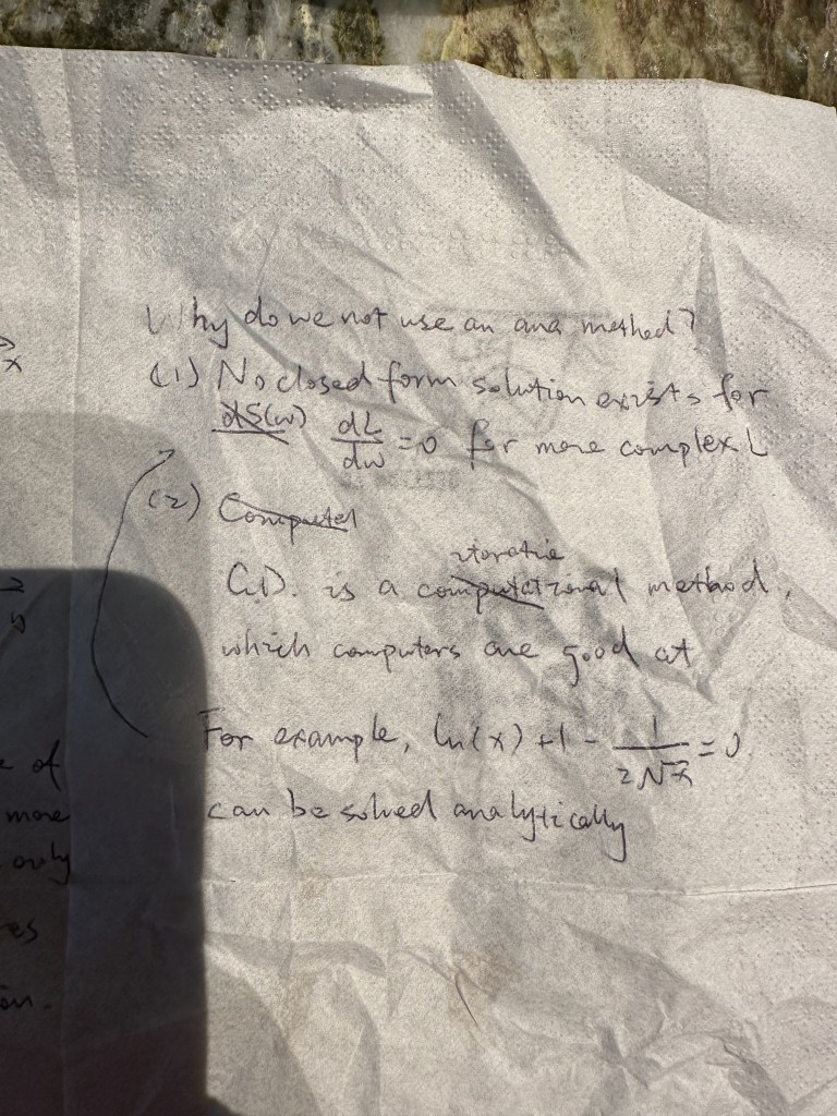 Why are gradient descent or its variants used to optimize parameters instead of solving the loss function analytically for its minima?